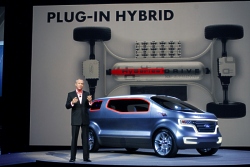 For Airstream, these demographic changes are meaningful as well. RV ownership is highest among retirement-age consumers, and by the end of the decade, 50- to 64-year-old consumers will tally 57 million – a 38 percent increase versus 2000, according to University of Michigan studies. And the number of RV-owning households is expected to grow to 8.5 million during the same period. Growing Ford’s crossover share means breaking through the competitive and fragmenting segment, and the company is leveraging bold designs to win customers. Ford’s crossover lineup already features the functional Freestyle, newly launched agile and modern Edge and, in time, will include a more refined full-size crossover based on the Fairlane concept. Ford designers wanted to push further into the future and tapped inspirations including Airstream’s iconic designs and the optimistic future Stanley Kubrick created and captured in his 1960s cult film 2001: A Space Odyssey. These inspirations are evident – inside and out. The concept’s bold, futuristic front-end explores a new look for Ford, encapsulating the single-surface grille and headlamps into the same graphic. Each of the concept’s bold orange-trimmed window graphics is a unique shape. Its doors are asymmetric as well, allowing for easy loading of passengers and cargo. In addition to the driver’s side hatch, the passenger side features a power clamshell door that runs two-thirds the length of the vehicle. A three-door hatch finishes the rear of the crossover. The futuristic theme and modern form language of the exterior carries through to the concept’s interior. The Ford Airstream Concept features a floating instrument panel with flush-mounted, touch-sensitive controls and a multi-function single gauge display provides the driver all primary information. A Sharp® dual-view screen centrally mounted on the instrument panel provides a camera view and secondary driver-oriented information, while allowing the front-seat passenger to view DVDs and post mobile blogs. The driver and front-seat passenger will navigate in style in modern, pod-shaped swiveling captain’s chairs that also rotate so they can easily socialize. In the rear, lounge-like seating is sculptural, creating a continuous cocoon-like environment wrapped in bold red B&B Italia fabric. The focal point of the rear seating area is a 360-degree screen for entertainment and games. The unique screen also creates ambient mood settings, including a modern lava lamp and virtual fire, as well as a live camera feed. The new HySeries Drive plug-in hydrogen fuel cell featured in the Ford Airstream Concept is more than a concept. This powertrain is already on the road and driving in a Ford Edge prototype. Ford scientists and engineers created this vehicle with partial funding from the United States Department of Energy. The HySeries Drive delivers the combined city/highway equivalent fuel economy of 41 miles per gallon. In this application, the fuel cell’s sole function is to recharge the vehicle’s lithium-ion battery pack as needed. This allows it to work like a portable generator, instead of an engine, as had been the case in previous Ford fuel cell vehicles. The new fuel cell, supplied by Ford partner Ballard, operates in a steady state, allowing a significantly smaller, less expensive fuel cell and drastically improving the durability of the fuel cell. With this system, the fuel cell delivers the power needed to recharge the lithium-ion batteries, rather than to be the primary power source to drive the wheels, as in a typical fuel cell-powered vehicle. In pure electric mode, the Ford Airstream Concept can travel 25 miles before the fuel cell begins operating to recharge the vehicle’s 336-volt lithium-ion battery pack. With the hydrogen-powered fuel cell, the range increases another 280 miles for a total of 305 miles. Safety belts remain the most important safety technology in vehicles. Ford is researching several new safety belt designs, including four-point safety belts found in the front seats of the Ford Airstream Concept. “Inside, outside and under the hood, the Ford Airstream Concept speaks to the future,” Mays said. “Ford is looking out onto the horizon and imbuing crossovers with emotion, made even more powerful by our association with Airstream.” January 07, 2007