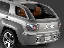 fronted by a signature seven-slot Jeep grille angled rearward to match