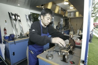 The service provided by Mizuno’s workshop technicians played a major part in its domination of the PGA European Tour. More Mizuno iron sets have competed on tour in the last ten seasons (1995-2004) than any other brand. As a result rival manufacturers have introduced their own workshops to protect their sponsored players from exposure to Mizuno’s products. The workshop trailer is split to two areas, the workshop itself and an office. While the workshop accommodates heavy tools for shaft cutting, head grinding, grip attachment and loft and lie measurement, much of the space is given to storage. At any one time the workshop will hold 1500 shafts, 6000 grips, and 100 sets of iron heads. The majority of work undertaken by Mizuno’s team is maintenance based with time spent checking the players loft and lies and replacing worn grips. The workshop also provides a platform to promote Mizuno products to Europe’s leading professionals, whilst being a key link in the R&D process. Equipment tastes and trends are fed back to Mizuno’s R&D centre through its Japanese technicians, whilst new prototypes have a platform to be tested by near perfect swings. The change from persimmon to metal woods and proliferation of rival workshops created a big impact on the way the workshop operates. While persimmon headed woods allowed a variety of options through shaping and binding, today’s metal woods are less labour intensive. With head shapes fixed, the emphasis is now on testing and correct shaft selection. While new workshops introduced by Mizuno’s competitors have not managed to stop their sponsored players from using the Mizuno facility (Mizuno are the last workshop remaining on a Sunday afternoon), they have reduced Mizuno’s workload, allowing the technicians to spend more time with its own iron users - to perfect their specification and set make up. The Mizuno workshop attends any event on the PGA European Tour it can physically reach. With tournaments out of reasonable driving distance in South Africa, Australia and Malaysia the workshop is limited to 25 events a year, with its first showing of the season at the Portuguese Open in April. In contrast to expectation the workshop’s busiest moments are at the Portuguese Open and annual Tour School. The Portuguese Open is often the players first chance to receive a full Mizuno equipment service while they tune their game for the season’s bigger events. At the Tour School the staff are bombarded with Challenge Tour players with their one yearly opportunity to us its facilities. Andy Kikidas, a protégé of the now retired Barry Willett from St Georges Hill is the current manager of the workshop, “Although many things have changed in the last 18 years, the workshop is one constant that the players can rely on. The technicians sent each year from Japan are second to none and often players prefer their work to that of their sponsors. Plus they know that the Mizuno workshop will be first to arrive and last to leave. That level of trust can only be built over many years.” Photo: Mizuno (March 16, 2012)