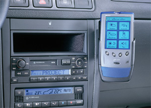 All these new departures become possible as a result of the special equipment installed in the "eGeneration” Golf, which is available ex-factory with a Personal Digital Assistant (PDA). This 'pocket PC' (an HP Jornada 548) is housed in a specially designed holder on the Golf's centre console. In the armrest between the two front seats there is also a modern mobile phone (a Nokia 6210) combined with a hands-free operating system; this phone is linked to the PDA.