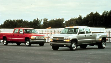 Chevrolet Silverado and GMC Sierra Photo: GM Detroit - The Chevrolet Silverado and GMC Sierra are the industry's first full-size pickup trucks which will be available with the option to operate on ethanol (E85) fuel. E85, a renewable fuel made from starch crops such as corn, helps reduce air pollution and America's dependence on foreign oil. In addition, E85 vehicles meet aggressive U.S. Department of Energy mandates for alternative fuel-powered vehicles. The E85 Silverado and Sierra are ideal for moving cargo and crew on rough terrain, in adverse road conditions and up severe inclines. The E85 compatible Chevrolet Silverado and GMC Sierra are additions to GM's entire E85 compatible truck line-up. GM also offers the Chevrolet S-10 and GMC Sonoma compact pickups, and Chevrolet Tahoe and Suburban and GMC Yukon and Yukon XL sport-utility vehicles with E85 compatibility. "This industry exclusive is yet another reason that customers rely on General Motors to meet their alternative fuel vehicle needs," said John Gaydash, marketing director for GM Fleet and Commercial and brand manager for Alternative Fuel Vehicles. The E85 compatibility feature will be offered as a special equipment option on select 1500 series Chevrolet Silverados and GMC Sierras equipped with the 5300 Vortec engine. The option is available for customer orders through all Chevrolet and GMC dealers. Vehicle production is expected to begin in early 2002. General Motors received a commitment for its first 50 orders for the E85 Chevrolet Silverado from Monsanto Company, a leading global provider of technology-based solutions and agricultural products that improve farm productivity, headquartered in St. Louis, MO. Ross Bushnell, Monsanto's director of U.S. marketing believes that the E85 full-size trucks support the business objectives of both the company and its customers. "Operating field vehicles with E85 demonstrates Monsanto's ongoing commitment to the American farmer and renewable energy sources," said Bushnell. (November 27, 2001) [Homepage] [