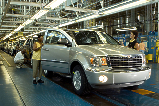 Manufacturing flexibility gives the company the ability to better respond to consumer demand for its growing product portfolio. The plant can vary the production mix between the two vehicles as needed. FMS is being implemented product by product and plant by plant across the Chrysler Group. New investment is adding state-of-the-art technology into plants allowing the production of more than one vehicle on a production line and rolling launches of new models. Additionally, Chrysler Group's workforce is becoming more flexible with the implementation of the team concept and an increased emphasis on supporting assembly-line operators. The rolling launch of the all-new 2007 Chrysler Aspen was completed in 24 months. In anticipation of the launch, 2,100 employees were trained to operate new high-tech robotic equipment and perform advanced manufacturing processes, resulting in new methods of error-proofing and a new level of manufacturing efficiency. The Newark Assembly Plant is also paving the way for a new initiative: Smart Manufacturing. Smart manufacturing provides even more empowerment of assembly line workers and fosters creativity on the shop floor. Smart processes include work teams, self-designed workstations, and a framework for flexible job classifications - designed to further improve plant flexibility and efficiency. Chrysler Group is the city of Newark's largest employer. The company has a significant impact on the Newark community with more than 2,100 employees throughout Delaware who generate approximately $136 million in annual wages and provide more than $6.8 million in taxable income to the state. The 3.4 million square foot Newark Assembly Plant is home to United Auto Workers Locals 1183 and 1212. (Aug 3, 2006)