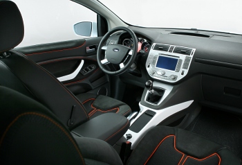 Inside, fine leathers and striking orange piping dominate. The Ebony interior is set off by a centre console and details in the door which also feature the piano-white finish from iosis X. A hint of the technology coming in Kuga, and other future Ford models, is seen in the new Blaupunkt navigation system which incorporates a 7-inch colour display to also show images from a rear view camera incorporated into the tailgate Photos: Ford (September 5, 2007)