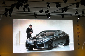In Paris, the Lamborghini Estoque demonstrates the innovation, the creativity and the design flair of the Lamborghini brand, currently represented by the enormous success enjoyed by Lamborghini’s Gallardo and Murciélago super sports cars.
