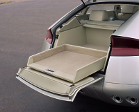 The front passenger zone has its own climate controls for maximum comfort. The rear zone, for rear seat passengers, features a DVD player, video game system and a rear water bottle cooler. The entire interior is covered with Alcantara fabric and solid aluminum parts, giving the FX45 passenger an exciting contrast of warm and cool design cues. FX45 Performance "FX45 Concept vehicle performance target is far above that of the current crop of SUVs," said Orbe. "Instead, we targeted large sports luxury cars, such as the BMW 7-series, Lexus GS430 and our own 2002 Q45. A specially tuned 32-valve 4.5-liter V8 with more than 300 horsepower and 300 ft-lbs of torque powers the FX45. Backing this powerful engine is a 5-speed automatic transmission with manual mode. Distributing power to the ground is an All-Modeâ driveline, adapted from the system found in the Nissan Skyline GT-R supercar, for superior performance in dry and adverse weather conditions. The 4-wheel independent suspension is tuned for on-road handling prowess. Assisting vehicular control is the Vehicular Control System, which controls brake pressure and engine torque in over- and understeer situations. "With its high performance sports orientation, we feel that an FX45 driver will not participate in serious off-roading," said Orbe. "Instead, we’ve given it stability and exceptional performance in light traction situations such as rain, snow or gravel." Braking is provided by large 4-wheel discs with Anti-lock. Electronic Brake Distribution, which distributes braking forces depending on vehicle load and the Brake Assist System, which aids the driver in panic braking situations, aid braking stability in the FX45 Concept. 20-inch wheels with 285/50R20 tires complete the FX45 Concept vehicle’s suspension and give it an aggressive, broad-shouldered look.