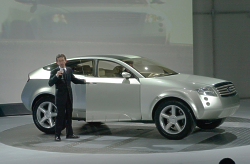 The FX45 Concept made its debut at the 2001 North American International Auto Show in Detroit. "We started with a blank piece of paper and asked the question, ‘What kind of vehicle do we want to drive?’" said Tom Orbe, vice president and general manager, Infiniti Division. "The result was the FX45 Concept — a sports car driver’s vehicle first with the practicality of an SUV second."