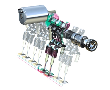 This is done by a lever positioned between the camshaft and the intake valves, its distance from the camshaft being adjusted infinitely by an additional eccentric shaft operated by an electric motor. Depending on the position of the VALVETRONIC control system, the lever converts the cam contour into a larger or smaller valve lift, whatever may be required.
