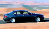 The iDrive concept is a fascinating combination of the two - of ergonomics and design elevated to a new standard. All driving functions are arranged around the steering wheel, basic comfort functions often required remain within the instrument panel, controlled by conventional switches. One control unit for hundreds of functions: the Controller. One of the most important features of the new 7 Series' innovative control and display concept is the Control Centre - the Controller and Control Display - operating and masterminding a large number of functions. The Controller is a very convenient, practical and useful control element at the front end of the centre armrest for intuitive use and operation comparable to a gear selector lever on a conventional car. Following the pattern of a compass, the driver gives the Controller instructions by pushing the lever to the front or rear, to the right and left, and in the four diagonal directions, then turning and pressing down the lever in order to select and operate menu functions. BMW ASSIST Internet gateway Introducing the new 7 Series, BMW is also launching a service system that sets new standards in every respect: BMW ASSIST for the first time gives the driver access to a mobile Internet gateway providing information and services tailored exclusively to the driver and his requirements. This makes the BMW Internet gateway another highlight of ConnectedDrive intelligently networking all information and assistance systems for the car. Receiving and sending e-mails; checking the stock exchange and shares to buy; calling up airline timetables and planning your itinerary; booking a hotel room and a table at the restaurant; ordering tickets for the theatre or the cinema; listening to the latest news and sports results; purchasing online and taking care of bank transactions. Click image for larger viewCruise Control Two examples from the iDrive concept clearly demonstrate how this function may be optimized for even greater driving pleasure and control ease: programmable cruise control and ACC Active Cruise Control. In addition to the functions of conventional cruise control, programmable cruise control enables the driver to record and save any random number of speed options when activated. Even with the car at a standstill, the driver is therefore able, via a lever on the steering column, to enter or erase up to 8 desired speeds by moving a cursor within the instrument cluster. This means he can pre-select speeds often required such as 30, 50, 60 or 100 km/h or 30, 55Žor 75 mph directly by pressing a button, without having to drive at precisely these speeds in advance. ACC Active Cruise Control extends and enhances the conventional cruise control supporting the driver in keeping distances and road speeds appropriate in a given situation. In dense convoys on the motorway and country roads, for example, ACC automatically maintains a specific distance from the vehicle ahead. This automatically adjusts the speed of the car to the flow of traffic, relieving the driver of the rather monotonous job of constantly fine-tuning his speed. The driver automatically activates ACC by switching on cruise control via the lever on the steering column, an integrated switch then enabling the driver to choose any of three distances. The engine The 8-cylinder power units featured in the new 7 Series are absolutely new from the ground up, incorporating unique technologies once again marking the top end of the range in every respect: Featuring fully variable management and control of the intake system, all camshafts (bi-VANOS) and the intake valves (VALVETRONIC), the engines are able to adjust to all requirements with a degree of perfection never seen before. The result is an increase in fuel economy by approximately 14 per cent despite an increase in output also of about 14 per cent, unparalleled spontaneity in response and handling, and a lower noise level than ever before. Throttle-free load management - the accelerator pedal acts directly on the VALVETRONIC engine management instead of a throttle butterfly - furthermore ensures all of these benefits on every fuel grade commercially available. Acknowledged to comply in full with emission management category EU4 and allowing an oil change interval of up to 40,000 km or 25,000 miles, the new engines also reduce cost of ownership to the advantage of the driver.