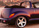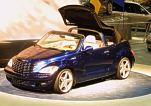 There's purity in the convertible's design that respects the original styling. While its fresh appearance embodies a totally new character, it still retains and builds on the excitement of the PT Cruiser." The Chrysler PT Cruiser Convertible is finished in a Deep-Shadow-Blue Pearl paint while the interior features a dark taupe and light pearl beige color scheme with cognac and body-color blue accents. Since the essential part of any cruising experience is taking your friends along, the PT Cruiser Convertible comfortably seats four passengers with theater-style seating. In this configuration, the rear passengers sit higher than the front passengers giving everyone a command-of-the-road experience. "Even though the convertible roof was lowered by an inch (25.4 mm), the rear passenger compartment provides ample room and comfort," said Senior Design Manager Jeff Godshall, responsible for the interior. "Utility and convenience are added to the interior with a speaker and a mesh storage pocket completing the longer front door trim panels and a recessed arm rest and courtesy light in each quarter panel. Equally practical, the rear and front passenger seats fold down for easy storage, providing pass-through for such things as golf clubs, skis or surf boards." Evoking classic drop-top design, the PT Cruiser Convertible's roof flows seamlessly and creates a 'fastback' appearance when the top is up. The top is power-operated. No powertrain changes have been made to execute this styling study. The vehicle is fitted with New York-themed "Empire" 19 inch cast aluminum wheels and custom-made Michelin 225/35 ZR19 tires. Many will say the Chrysler PT Cruiser Convertible is two vehicles in one," said Creed. "It has a certain modern look when the top is down, with its sport bar and long passenger compartment. Yet when up, the top has a slammed-forward retro-position, much like a '30s custom chopped coupe, emulating the tension of an archer's bow being drawn back. Lower, sleeker with even more attitude, the PT Cruiser Convertible styling study is the latest example of the sort of fun we can have with PT Cruiser. And there's more to come." Preliminary Specifications The Chrysler PT Cruiser Convertible styling study is based on a regular production Chrysler PT Cruiser Dimensions