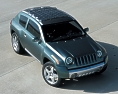 Four bucket seats offer all occupants a command-of-the-road seating position, comfort and support. The seats are trimmed in green leather and GORE-TEX®‚ with 'Force Green' soft touch grommets. The rear buckets fold to create a flat loading surface, executed in low-gloss stainless steel with integrated tie-downs in the side trim. True to its Jeep heritage, the interior features a molded rubber floor. The spare tire is incorporated into the rear hatch. Jeep Compass conveys an expressive personality in its exterior design with details such as fender- length running lights, and stainless steel brush guard and sill panels with the Jeep name. The roof features a unique diamond-plate textured liner with integrated tie-downs, developed to take the abuse of any type of hauling. "Our goal was to make the Jeep Compass rugged, durable and able to take a beating at all the typical scuff zones," Castiglione said. "You can play hard and be rough on this vehicle and its exterior holds up, giving the driver total freedom to go anywhere and do anything. After all, it is an authentic Jeep vehicle-right down to its seven-slot grille and trapezoidal wheel arches." (January 17, 2002) All pictures: Chrysler