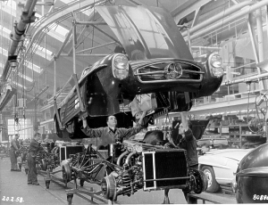 The first units of the 300 SL were sold in Europe in 1954, whilst Maxi Hoffman received his first customer car in March 1955. A total of 1,400 Gullwings rolled off the production line, the lion’s share of which – some 1,100 units – found their way to the USA. Hoffman had thus assessed the response of the market to the car extremely well and had every right to be satisfied with his work. However, he had also succeeded in stoking the expectations of his discerning customers, who now wanted a touch more comfort in their cars, a larger trunk and, in many cases, a cabriolet version. Hoffman passed the message on to Stuttgart and once again his request bore fruit – this time in the form of the 300 SL roadster (W 198 II) unveiled in 1957. photos: Mercedes-Benz