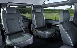 Based on a cast-iron block, the engine features an alloy, 16-valve cylinder head with Denso common rail fuel injection. Not only is combustion noise dramatically reduced, thanks to the excellent control provided by the engine’s solenoid-driven fuel injectors, but a new Garrett variable geometry turbocharger also helps ensure throttle response is improved over the outgoing engine. The engine’s lubrication and sealing systems have been specially developed to cope with Defender’s onerous range of operating angles. The new GFT MT 82 six-speed gearbox provides a much wider ratio spread than before; the lower first gear offers a reduction in crawl speed and combines with the engine’s increased torque output to make towing on-road and off-road even easier. The increased engine torque also helps in-gear acceleration, and has allowed the new sixth gear to be set 20 per cent higher than the outgoing model’s top gear. This helps to improve real-world cruising refinement and fuel economy. Ground gears in both the gearbox and new transfer box help boost refinement, while reductions in clutch and gear-change loads make day-to-day living with Defender significantly easier. Individual pedal maps specifically matched to the demands of each gear are designed to ensure throttle progression and control is better than ever before; in addition, improved anti-stall characteristics further extend the vehicle’s renowned ability to tackle the toughest terrain. Changes to the vehicle exterior have been kept to a minimum, with a revised bonnet profile the only clue to the new Defender’s increased capability. IMPROVED COMFORT AND ERGONOMICS Defender’s new facia is based on a single, large moulding supported on a robust steel rail to help eliminate squeaks and rattles. Instruments from Land Rover’s Discovery 3 provide clear, concise information to the driver, and details like all-LED instrument illumination help ensure high standards of reliability. Improvements to ergonomics abound – for example, a new passenger-side grab handle provides robust, two-handed support during extreme off-road driving. The process of modernising Defender’s facia hasn’t sacrificed its usability either, with versatile stowage shelves conveniently located for both the driver and passenger. Two console options are available: a practical open-tray design that keeps contents to hand and a large, lidded design that provides an impressive 14-litres of stowage. In-car entertainment systems have been upgraded to take advantage of Defender’s improved refinement. For the first time, high-mounted tweeters are available in Defender and work in conjunction with the new speaker installation for significantly improved clarity and sound reproduction. An auxiliary/MP3 audio input socket is also available. Seating is also comprehensively improved. New, taller front seats are designed to improve back support and head restraint ergonomics. Robust, more supportive second row seats are introduced too. 110 Station Wagon and 130 Crew Cab models can comfortably accommodate three occupants on a new, asymmetrically-split second row seat. A spring-assisted fold mechanism helps when folding the seats for carrying large or awkward loads. Defender 90 Station Wagon second row occupants benefit from a pair of individual, full-size, forward-facing rear seats. Providing significantly increased comfort and space over the outgoing model, these seats are also available as a third row option on the 110 Station Wagon. Accessed either through the rear door or by folding the second row seats, they can be easily folded and stowed sideways in the loadspace. Seat trims include durable all-vinyl and cloth specifications; a half-leather option is also available to add a touch of luxury to the new cabin. Three-point safety belts are specified for all seating positions. Upgraded sound insulation, the common rail engine’s excellent combustion control and the significantly higher top gear all contribute to a substantial overall improvement in cabin refinement. In the words of Gary Taylor, Defender’s chief programme engineer, “For many customers, the step change in Defender’s refinement will be one of the most welcome advances; not only are noise levels significantly lower, but sound quality is transformed too.” Defender’s unique vehicle architecture has been retained. The chassis frame is available in three different wheelbases, and in both standard and heavy-duty guise (for even greater load-bearing capabilities). A total of 14 separate body styles – from pick-ups and soft-tops to crew cabs and station wagons – are produced on the mainstream production line. Beyond this, Land Rover’s Special Vehicle Operations team offer a range of products from standard drop-side or box-body conversions to bespoke design and build adaptations into ambulances, mobile hydraulic platforms and even airport fire tenders – all of which are covered by Land Rover’s extensive warranty. (August 26, 06) All pictures: Land Rover