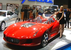 Photos: Automotive Intelligence The lighting clusters, on the other hand, mark a distinct change of direction: at the front a slash over the crest of the wing, at the rear a double cavity that evokes the high set exhausts of Ferrari's current Formula 1 cars. The two clearly outlined roll bars are linked by a transverse fin that serves a dual purpose since it houses both the leds of the third stop light and a pair of cameras. The function of the camera facing the rear is self-evident: it replaces the rear-view mirror by delivering picture signals to the LCD screen on the central console. The second camera on the other hand, is focused on the driver and is connected to the on-board video-recording system. In this way it provides the driver with his own in-built camera car and enables him to create a video library he can access for memories of open car driving and its joys on those dark, wintry days when he has to leave his two-seater spider in the garage. The Sides It has taken Pininfarina just a few decisive pencil strokes to endow the Rossa with a profoundly meaningful sideview. The crest of the wing tapers as it approaches the cabin to create the base line for the slender swoop of glazing along the side. The result is a flowing solid section to set against the vacuum left by the front wing which is so deeply recessed that it merely forms a lid for the engine bay. This subtle balance between plenitude and vacuum is interrupted by the fin that rises from the sill to frame the front wheel: a contemporary interpretation of a key design feature from the 1958 Testa Rossa. That fin is a decorative element which also houses a functional component in the form of the direction indicator flasher. In side view the Rossa revives a surface treatment last seen on the Mythos but is here extended along the entire body of the car which seems to be wedged into a much wider bonnet. The modeling of the sides is a subtle interplay of softly moulded surfaces bordered by sharp angles which might be described as a biodesign reinforced by visible ribbing. The slender flow of the glazing completes the overall design without disturbing it, the only interruption being provided by the two roll-bars that crouch over a tail-end that slopes gently downwards. The Front The nose of the Rossa incorporates a classic Ferrari radiator grille, its blunted trapezoid shape embellished by the prancing horse motif at the centre and a rectangular grid with big air intakes serving the brakes and engine bay at each end. In other words, however totally different in form and function, the three key elements that have featured on all recent Ferraris. On this particular car, the planes into which these apertures are carved are forcefully characterised: the centre of the nose protrudes to transform the radiator grille into a shark-like mouth, while the air intakes are pushed back into the natural perimeter of the car. However, since an over-long bonnet would have ruptured the overall tension, the Rossa turns its back on that possibility and the designers leave the top of the engine visible to the naked eye. Forty years ago, it was the carburettor intake stacks that protruded out of the sheet steel. This time it is the ducts whose smoothly uninterrupted shapes form a more harmonious partnership with the lines of the bodywork. However, setting the engine in relief serves more than a purely decorative purpose, since it has allowed to lower the bonnet line far more than would otherwise have been possible and that in its turn retrieves the magical equilibrium characteristic of the classic sports car on which the wings rise to embrace the bonnet. That too is a Pininfarina - Ferrari classic, traditionally seen on rear-engined models but here making an appearance on a front-engined car. Finally, the windscreen is reduced to a sliver of glass that merely displaces the air when the car is driven at speed and offers no protection whatsoever from the rain. This is after all an open sports car and like any self-respecting spider thoroughbred rejects the mere thought of even the skimpiest canvas roof with a shudder of well-bred disdain. The interiors The cockpit of the Rossa is as dynamic as the bodywork, no more than a driver-sized niche carved out of the car's flowing lines. It's hard in fact to say when interior becomes interior: bent by the windscreen the bonnet changes direction to become the facia without changing pace, as the paintwork of the body panels surge along the central tunnel and up the seat backs which themselves metamorphose into a boot-lid.